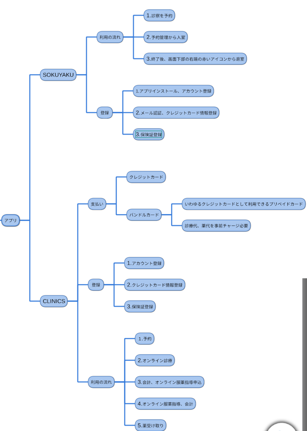 ひとつがSOKUYAKU、もうひとつがCLINICSでしたいずれもできることは予約、診察でその後、登録した決済方法より支払いがなされ、処方箋が自宅に届いたりするといったことでした。